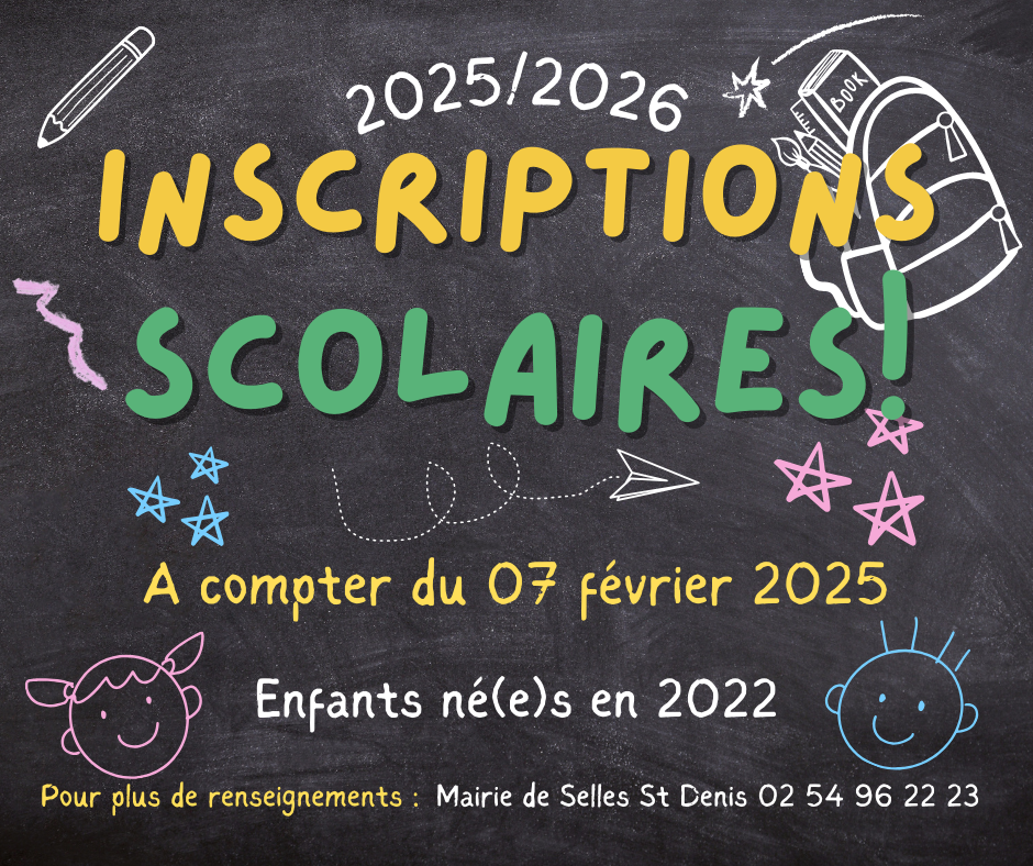 Les inscriptions scolaires pour la rentrée 2025/2026 seront ouvertes à compter du 07 février 2025, en mairie aux horaires d’ouverture.